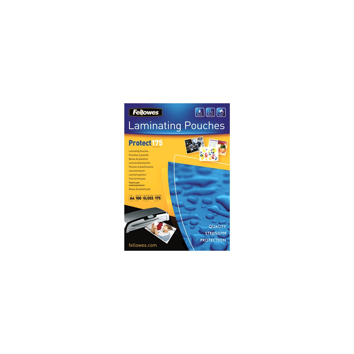 Fellowes 5308703. Colore del prodotto: Trasparente, Materiali: Plastica, Formato: A4. Larghezza: 210 mm, Profondità: 1 mm, Altezza: 300 mm. Quantità per pacco: 100 pz