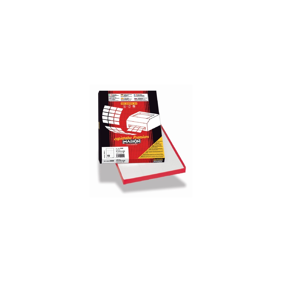 Markin 210C511RIM. Colore del prodotto: Bianco, Forma: Rettangolo, Tipo di adesivo: Rimovibile. Larghezza: 105 mm, Altezza: 37 mm, Larghezza del foglio: 21 cm. Etichette da pacchi: 1600 pz, Etichette per foglio: 16 pz, Fogli per pacco: 100 fogli. Quantità di cartone da spedizione: 16000 pz