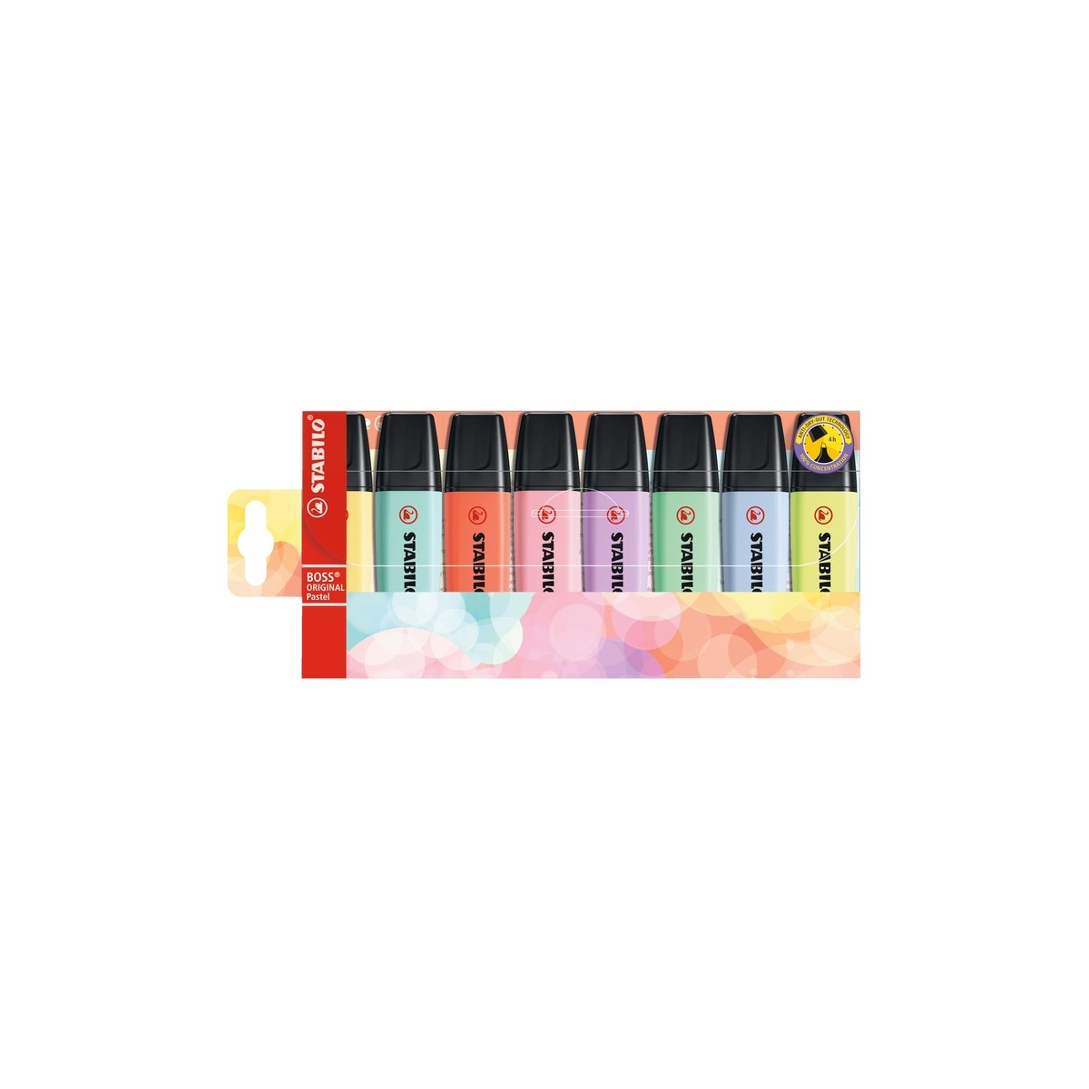 STABILO Boss Original Pastel. Quantità per pacco: 8 pz, Colore penna: Multicolore, Tipo di tappo: Punta smussata. Larghezza imballo: 18 mm, Profondità imballo: 220 mm, Altezza imballo: 137 mm
