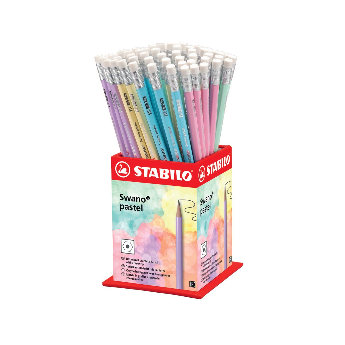STABILO Swano Pastel. Rigidità: HB, Colore del prodotto: Albicocca, Blu, Verde, Rosa, Viola, Giallo, Forma: Esagonale. Larghezza imballo: 90 mm, Altezza imballo: 200 mm, Profondità imballo: 90 mm. Quantità per pacco: 72 pz
