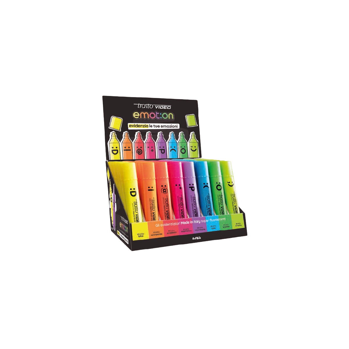 Tratto Video Emot:on evidenziatore 80 pz Punta smussata Ciano, Verde, Verde chiaro, Arancione, Rosa, Viola, Rosso, Giallo