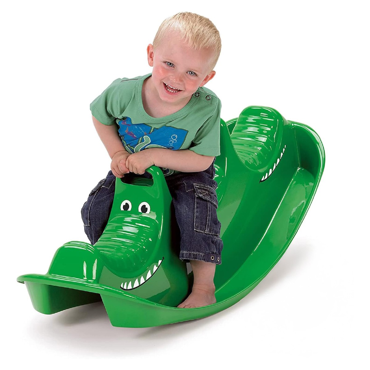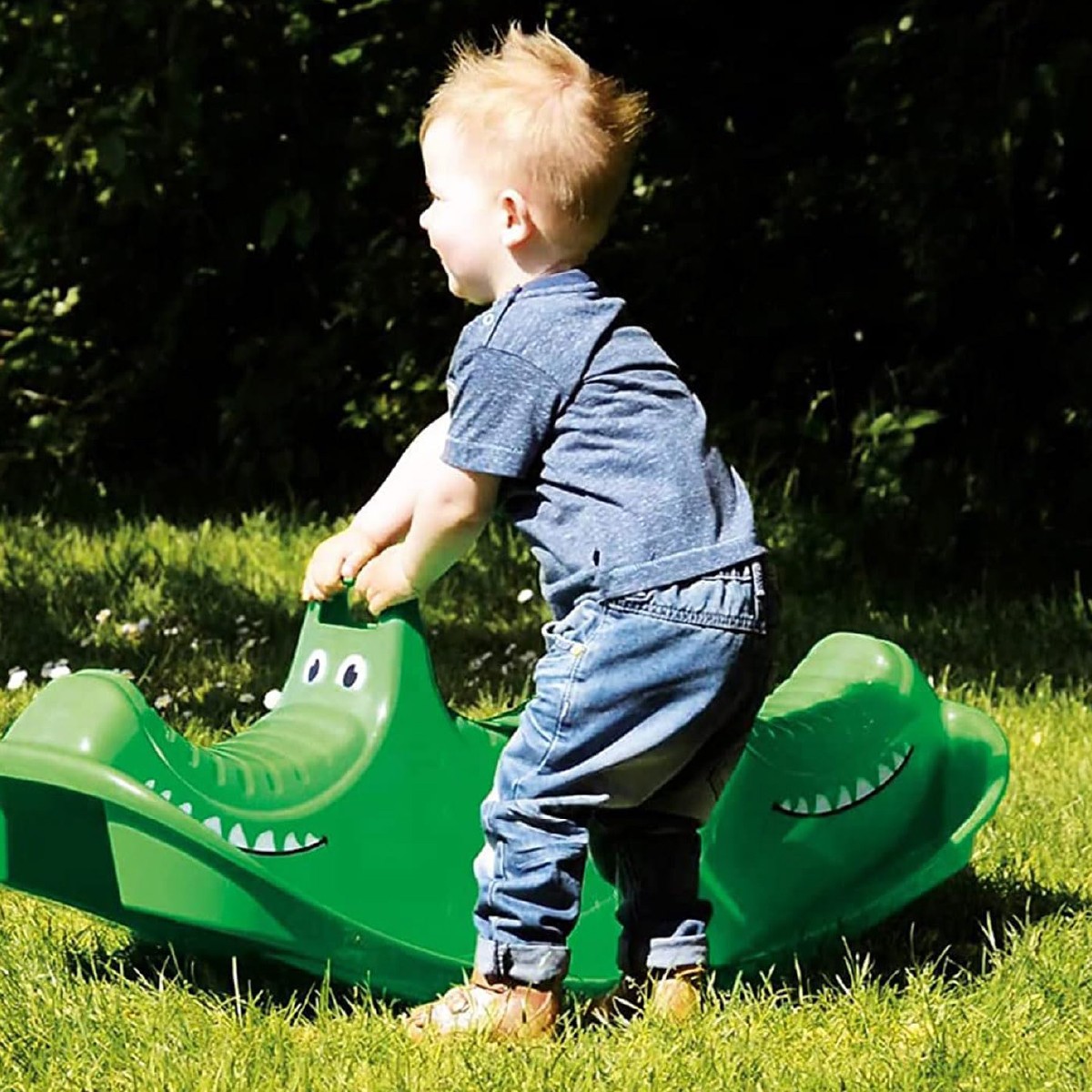 Dondolo Coccodrillo in Plastica - Modello con 3 Posti a Sedere e Piedini Antiribaltamento