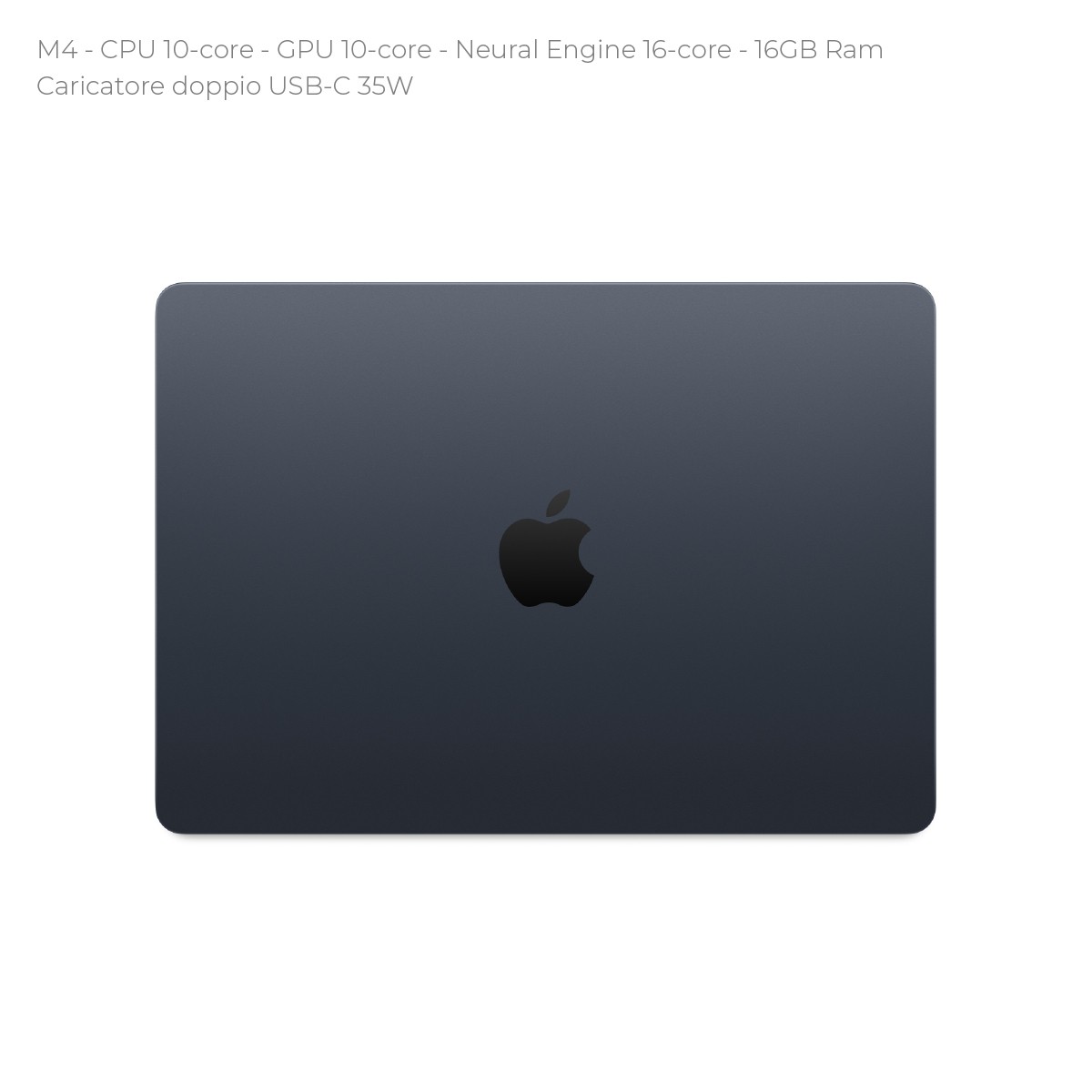 Notebook 15" - Apple MacBook Air - M4 CPU 10-core - GPU 10-core - Ram 16GB - SSD 256GB - MacOS Sequoia - Midnight