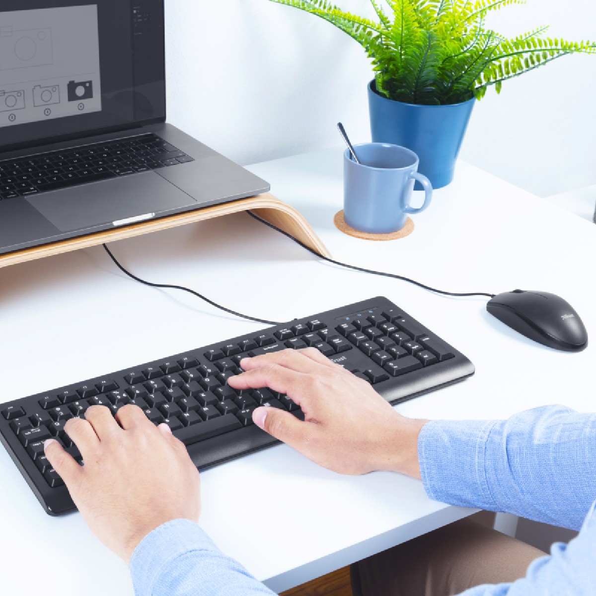Hai mai desiderato un ambiente di lavoro silenzioso e produttivo? Il Kit Tastiera e Mouse Trust Primo, nero, è la soluzione ideale per i piccoli comuni che vogliono un ufficio ordinato e funzionale. Entrambi i dispositivi, con tasti e pulsanti silenziosi, permettono di lavorare senza disturbare. La tastiera, resistente agli sversamenti, assicura durabilità anche nei momenti più caotici. Il cavo da 1,8 metri offre flessibilità di posizionamento, mentre il mouse ambidestro garantisce comfort per tutti. Perfetto per uffici pubblici che necessitano efficienza e tranquillità.
