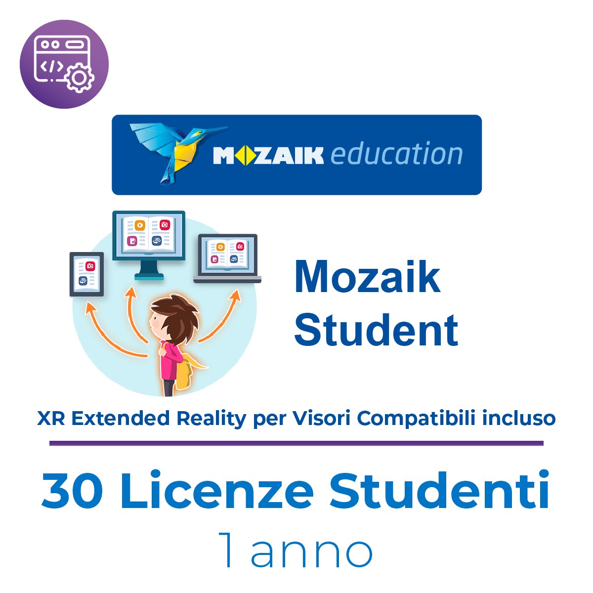 Mozaik STUDENT– Licenza 30 Utenti/Studenti - Abbonamento 1 Anno – Multipiattaforma - Inclusa XR Extended Reality - Italiano