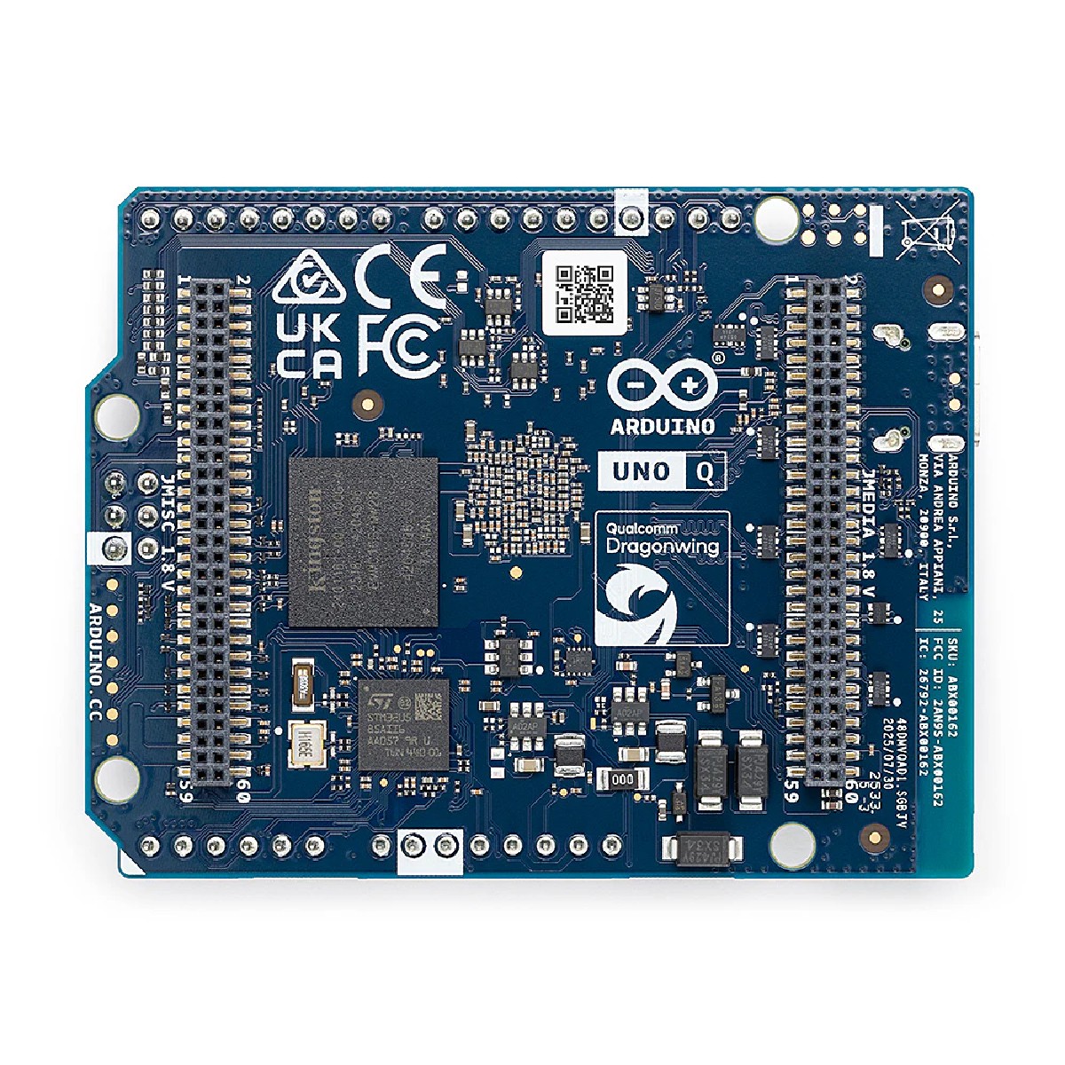 Il design ibrido di Arduino UNO Q lo rende la piattaforma dual-brain perfetta per la tua prossima innovazione. Combina un microprocessore Qualcomm®® Dragonwing™ QRB2210 compatibile con Linux Debian con un microcontrollore STM32U585 (MCU) in tempo reale. È Arduino, è un computer, è tutto ciò che vuoi costruire.