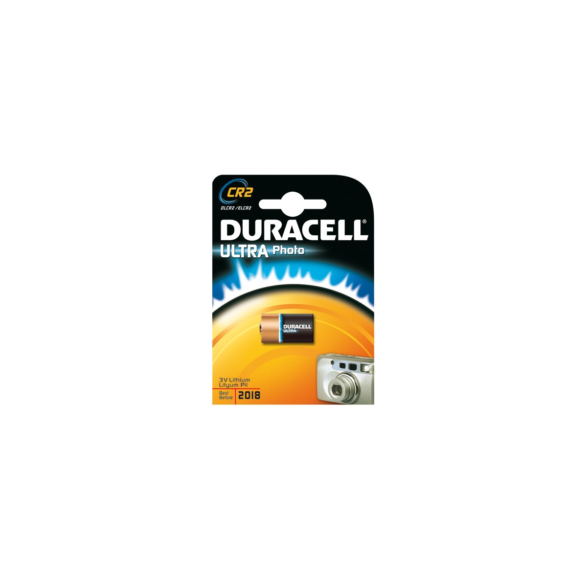 Duracell Ultra Photo CR2. Tipo batteria: Batteria monouso, Tecnologia batteria: Ioni di Litio, Voltaggio della batteria: 3 V. Dimensioni imballo (LxPxA): 119 x 84 x 16 mm, Fattore di forma della batteria: Cilindrico, Tipo: CR-2