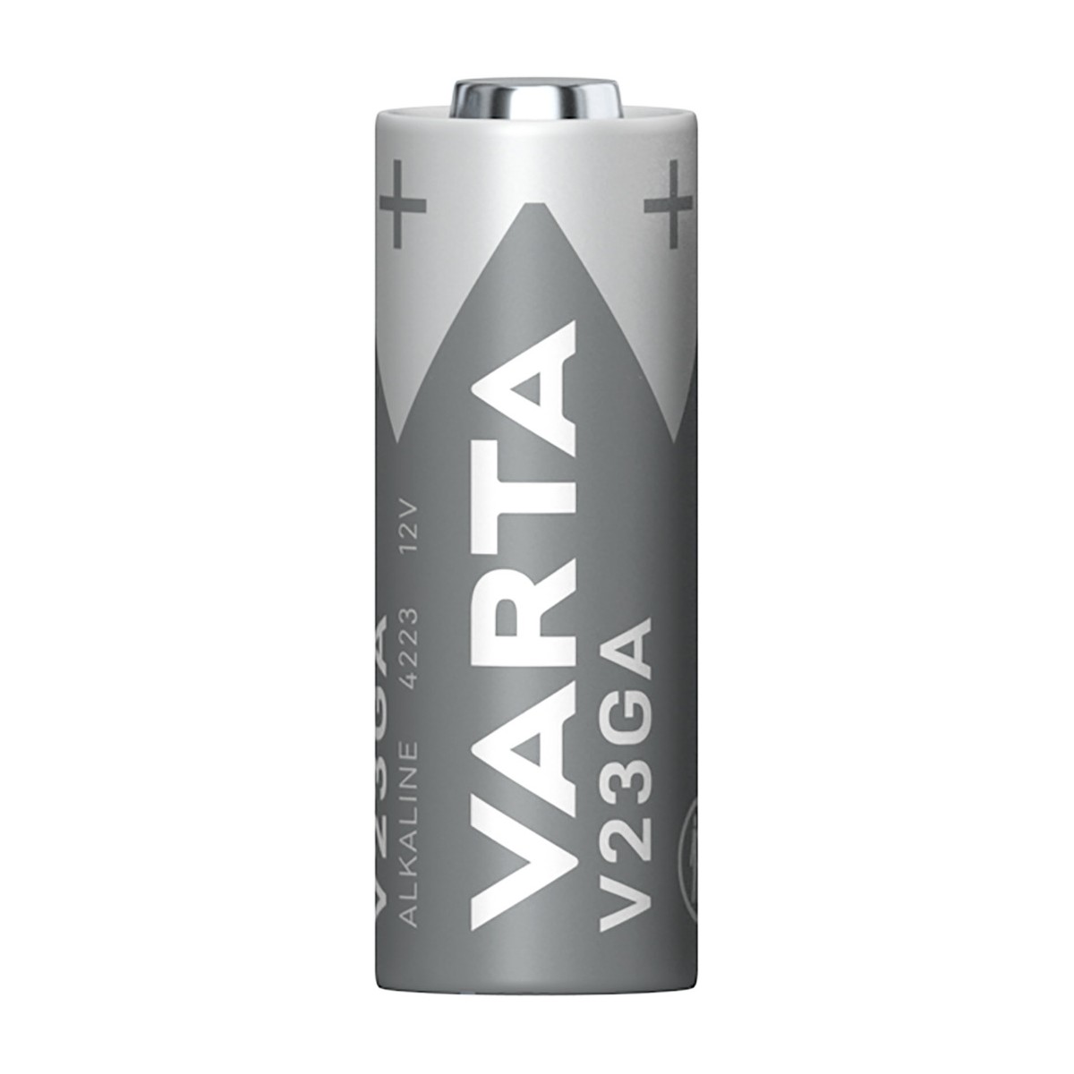 Varta ALKALINE V23GA (Batteria Speciale, 12V) Blister da 1. Tipo batteria: Batteria monouso, Dimensioni della batteria (o delle batterie): A23, Tecnologia batteria: Alcalino. Altezza: 28,5 mm, Diametro: 1,03 cm, Peso: 8,1 g. Larghezza imballo: 56 mm, Profondità imballo: 13,5 mm, Altezza imballo: 65 mm. Fattore di forma della batteria: Cilindrico, Tipo: V23GA