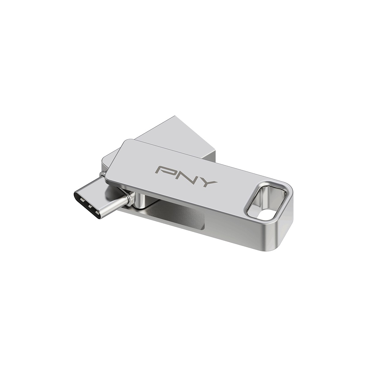 PNY DUO LINK. Capacità: 64 GB, Interfaccia dispositivo: USB Type-A / USB Type-C, Versione USB: 3.2 Gen 1 (3.1 Gen 1), Velocità di lettura: 200 MB/s. Fattore di forma: Girevole, Colore del prodotto: Acciaio inox
