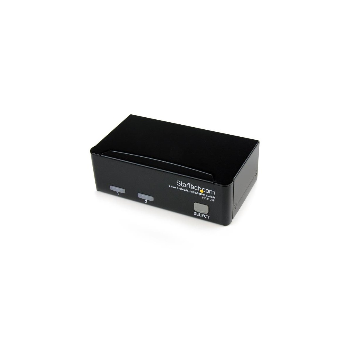 StarTech.com Kit switch KVM USB professionale a 2 porte con cavi. Tipo di porte tastiera: USB, Tipo porta mouse: USB, Tipo porta video: VGA. Risoluzione massima: 1920 x 1440 Pixel, Intervallo di scansione: 3,8,15,30 s, Numero di utenti: 1 utente(i). Colore del prodotto: Nero, Materiale della scocca: Acciaio, Lunghezza cavo: 1,8 m. Voltaggio di ingresso: 100 - 240, 5 V, Corrente d'ingresso: 0.4 A, Corrente d'uscita: 2 A. Larghezza: 124 mm, Profondità: 70 mm, Altezza: 40 mm