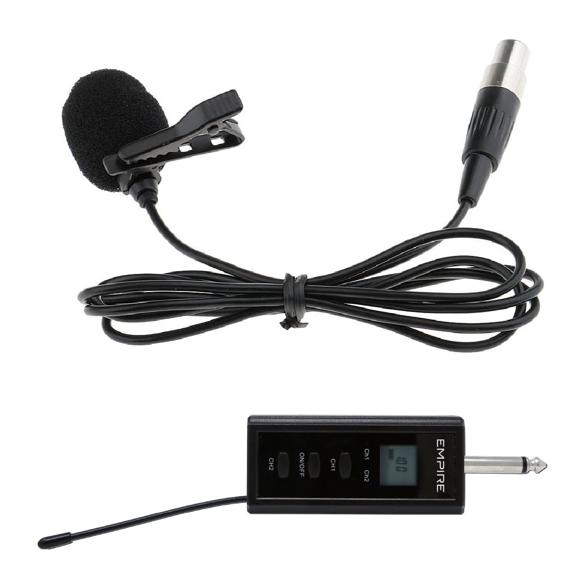 Kit che include due microfoni wireless (1 microfono a gelato e 1 microfono da collo/testa). Tramite il ricevitore integrato con jack da 6,3mm può essere collegato alle casse Empire compatibili o a qualsiasi computer.