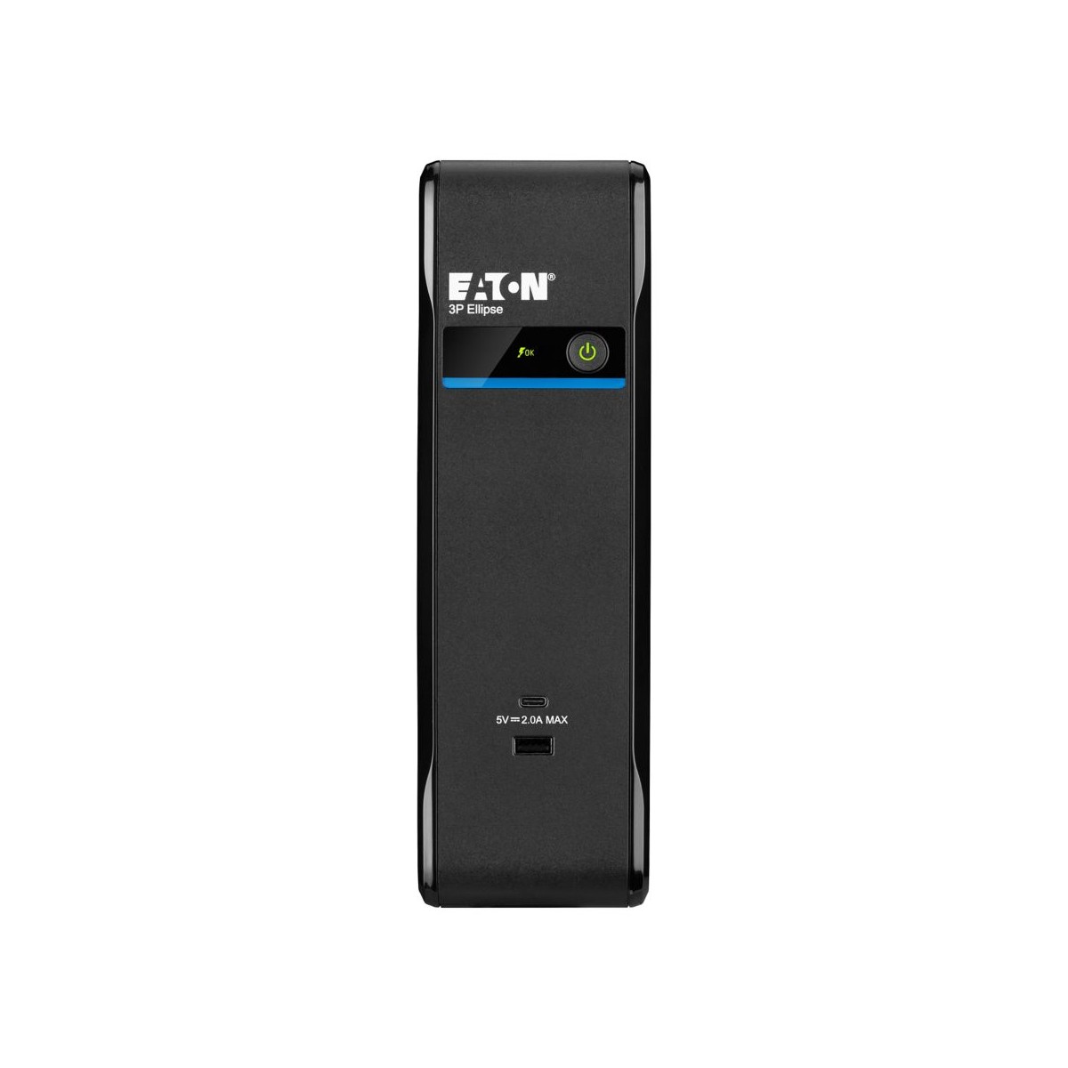Eaton 3P Ellipse. Topologia UPS: Standby (Offline), Potenza in uscita: 0,9 kVA, Potenza in uscita: 540 W. Tipo di uscita AC: Accoppiatore C14, Quantità prese AC: 4 presa(e) AC, Tipo di porta USB: USB Type A/USB Type-C. Capacità della batteria: 9 Ah, Voltaggio della batteria: 12 V. Fattore di forma: Tower, Colore del prodotto: Nero, Tipo di display: LED. Certificati di conformità: CB, CE, RoHS, WEEE, Certificazione: IEC/EN 62040-1 IEC/EN 62040-2 IEC/EN 62040-3 CE UKCA Ukr Cm