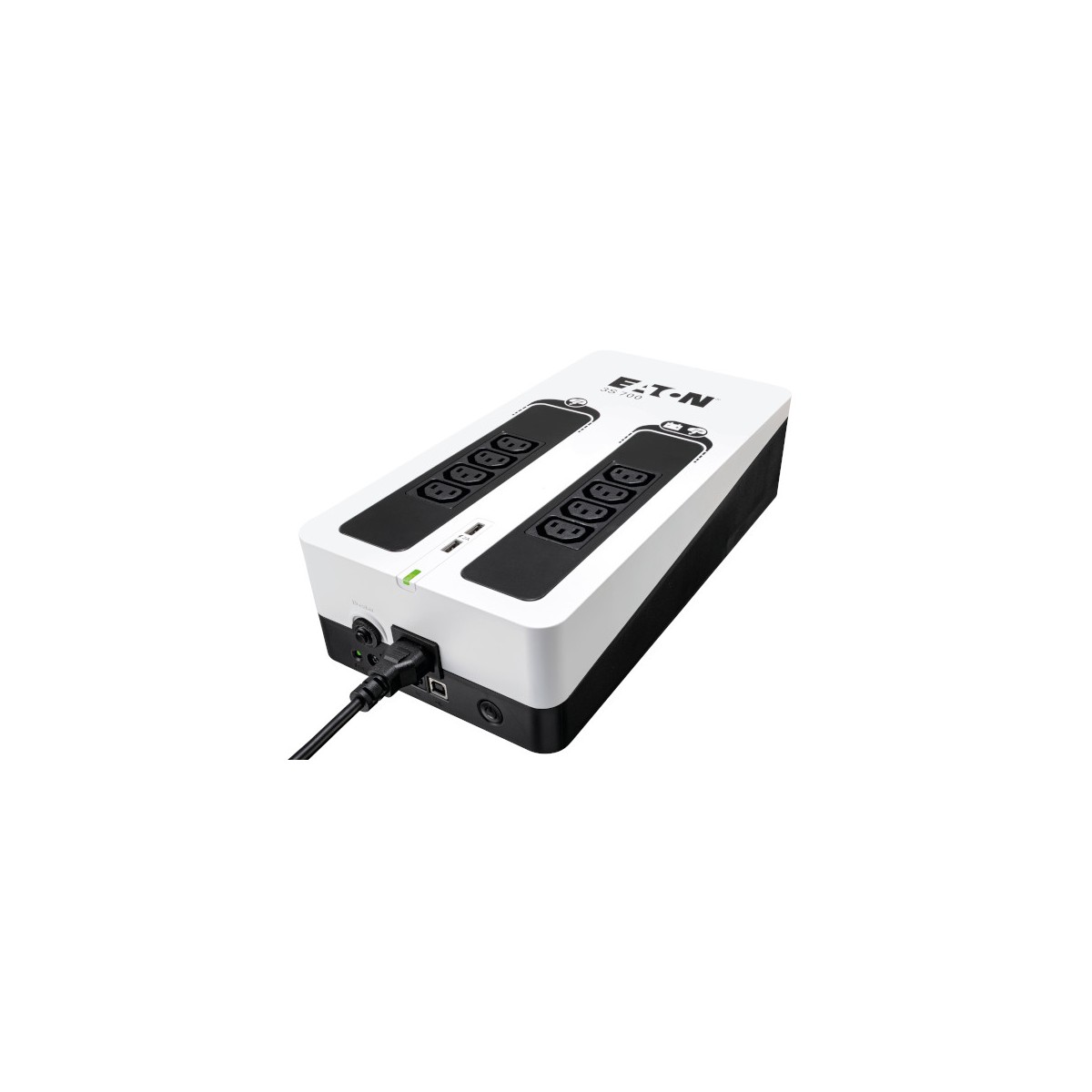 Eaton 3S700I. Topologia UPS: Standby (Offline), Potenza in uscita: 0,7 kVA, Potenza in uscita: 420 W. Tipo di uscita AC: Accoppiatore C13, Presa di corrente: Accoppiatore C14, Quantità prese AC: 8 presa(e) AC. Tecnologia batteria: Acido piombo (VRLA). Colore del prodotto: Nero, Bianco, Lunghezza cavo: 1,5 m. Certificazione: CE/EAC/Ukr/Cm/CB report