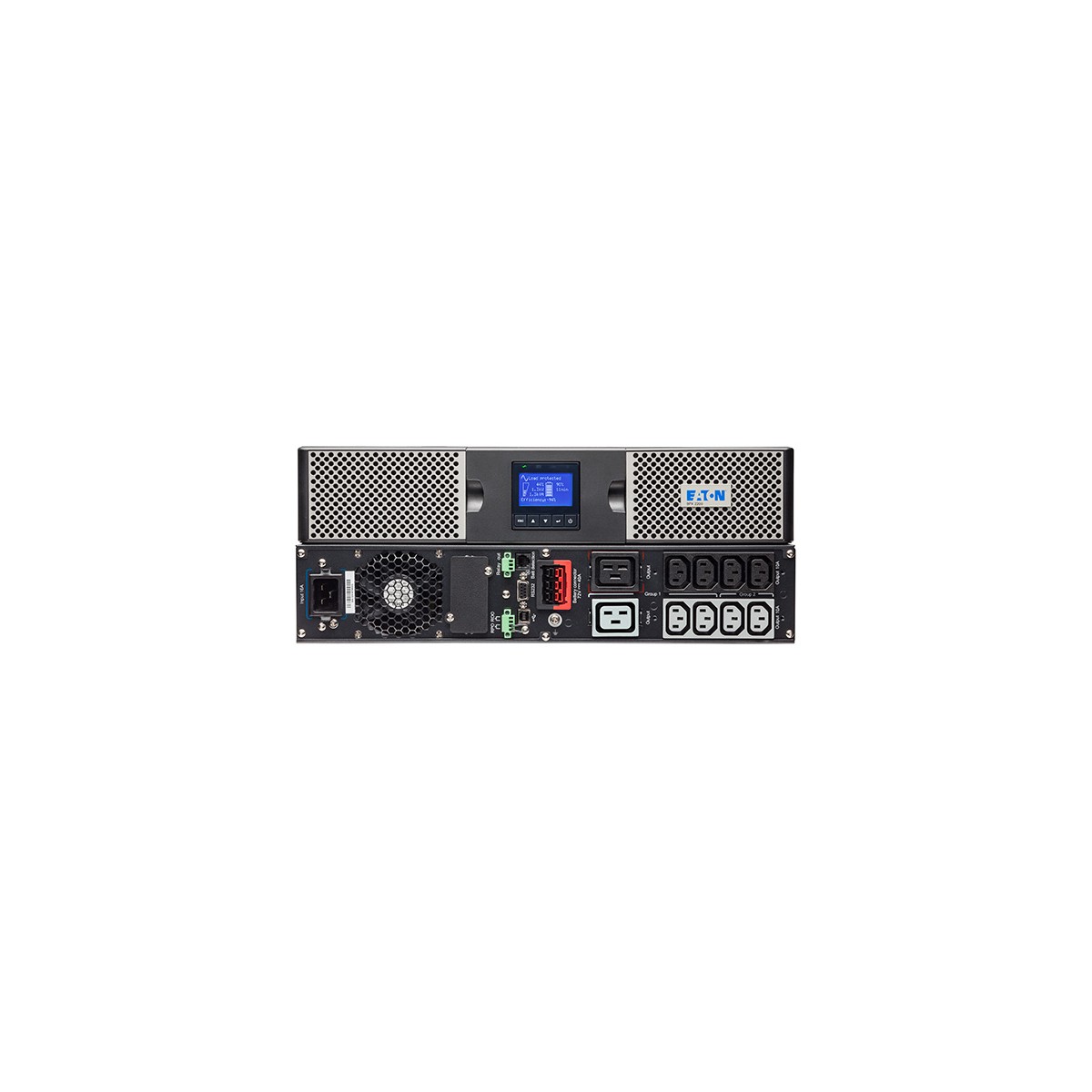 Eaton 9PX2200IRT2U. Topologia UPS: Doppia conversione (online), Potenza in uscita: 2,2 kVA, Potenza in uscita: 2200 W. Tipo di uscita AC: Accoppiatore C13, Accoppiatore C19, Presa di corrente: Accoppiatore C20, Quantità prese AC: 10 presa(e) AC. Tecnologia batteria: Acido piombo (VRLA), Tempo di salvataggio minimo a mezzo carico: 10 min. Fattore di forma: Rackmount/Tower, Colore del prodotto: Nero, Capacità di rack: 2U. Larghezza: 440 mm, Profondità: 605 mm, Altezza: 86,5 mm
