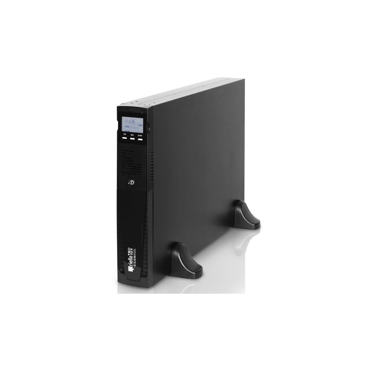 Riello Vision Dual 1500. Potenza in uscita: 1,5 kVA, Potenza in uscita: 1350 W, Tensione operativa in entrata (min): 220 V. Tipo di uscita AC: Accoppiatore C13, Presa di corrente: Accoppiatore C14, Quantità prese AC: 8 presa(e) AC. Tempo di ricarica: 4 h. Fattore di forma: Rackmount/Tower, Colore del prodotto: Nero. Larghezza: 450 mm, Profondità: 425 mm, Altezza: 87 mm