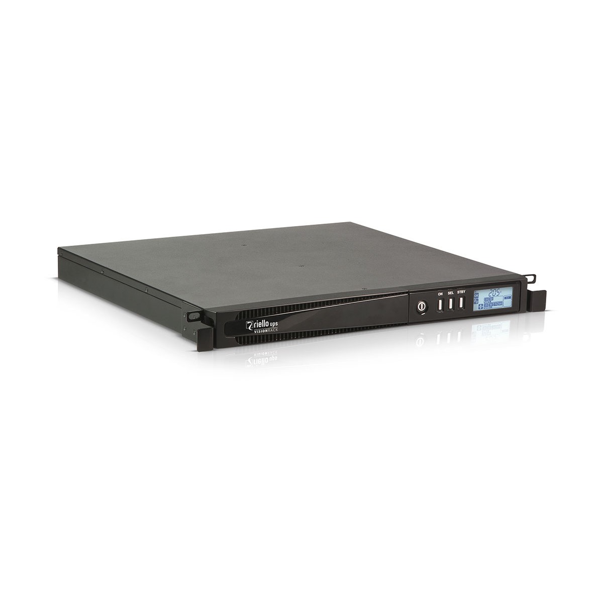 Riello VSR 800. Topologia UPS: A linea interattiva, Potenza in uscita: 0,8 kVA, Potenza in uscita: 640 W. Tipo di uscita AC: Accoppiatore C13, Presa di corrente: Accoppiatore C14, Quantità prese AC: 4 presa(e) AC. Tecnologia batteria: Acido piombo (VRLA), Tempo di ricarica: 6 h. Fattore di forma: Montaggio a rack, Colore del prodotto: Nero, Capacità di rack: 1U. Profondità: 420 mm, Peso: 12 kg, Larghezza imballo: 595 mm