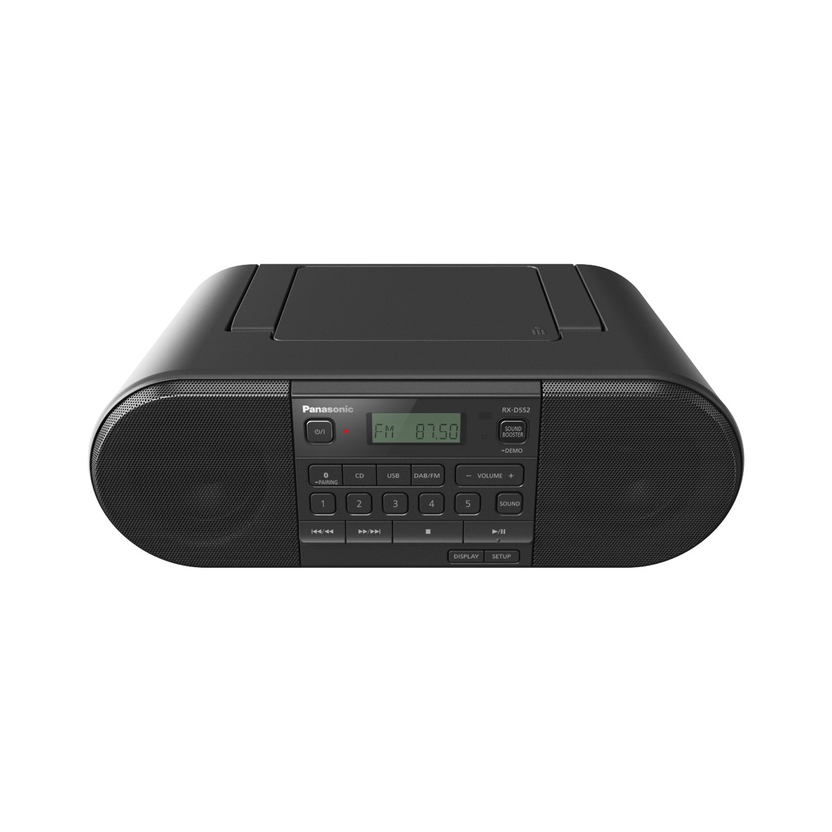 Panasonic Radio RX-D552: potente, portatile e dotata di radio DAB+, lettore CD e Bluetooth. Tipo sintonizzatore: Digitale, Bande del sintonizzatore: DAB, DAB+, FM. Tipo drive ottico: Lettore, Tipi di dischi supportati: CD, CD-DA, CD-R, CD-RW, Meccanismo caricamento: Superiore. Potenza in uscita (RMS): 20 W. Formati audio supportati: MP3. Colore del prodotto: Nero, Tipo di controllo: Pulsanti, Antenna: integrato (min 180 - max 823 mm)