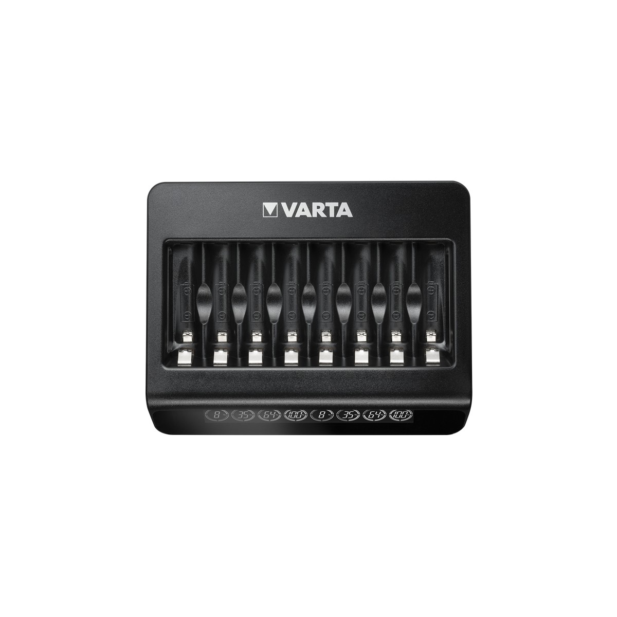 Varta LCD Multi Charger+. Adatto per: Batteria per uso domestico, Tipologia alimentazione: AC, Tecnologie batteria compatibili: Nichel-Metallo Idruro (NiMH). Colore del prodotto: Nero, Tecnologia display: LCD. Voltaggio di ingresso: 100 - 240 V, Tempo di ricarica: 4 h, Corrente di carica: AAA - 200mA, AA - 450mA. Quantità per pacco: 1 pz