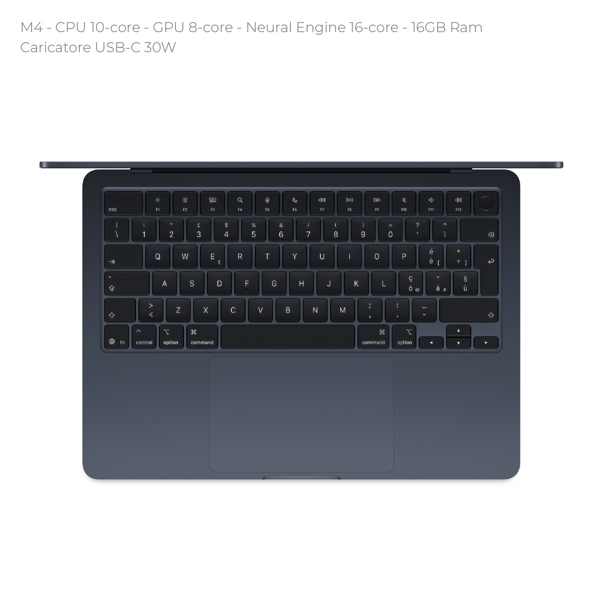 Notebook 13" - Apple MacBook Air - M4 CPU 10-core - GPU 8-core - Ram 16GB - SSD 256GB - MacOS Sequoia - Midnight