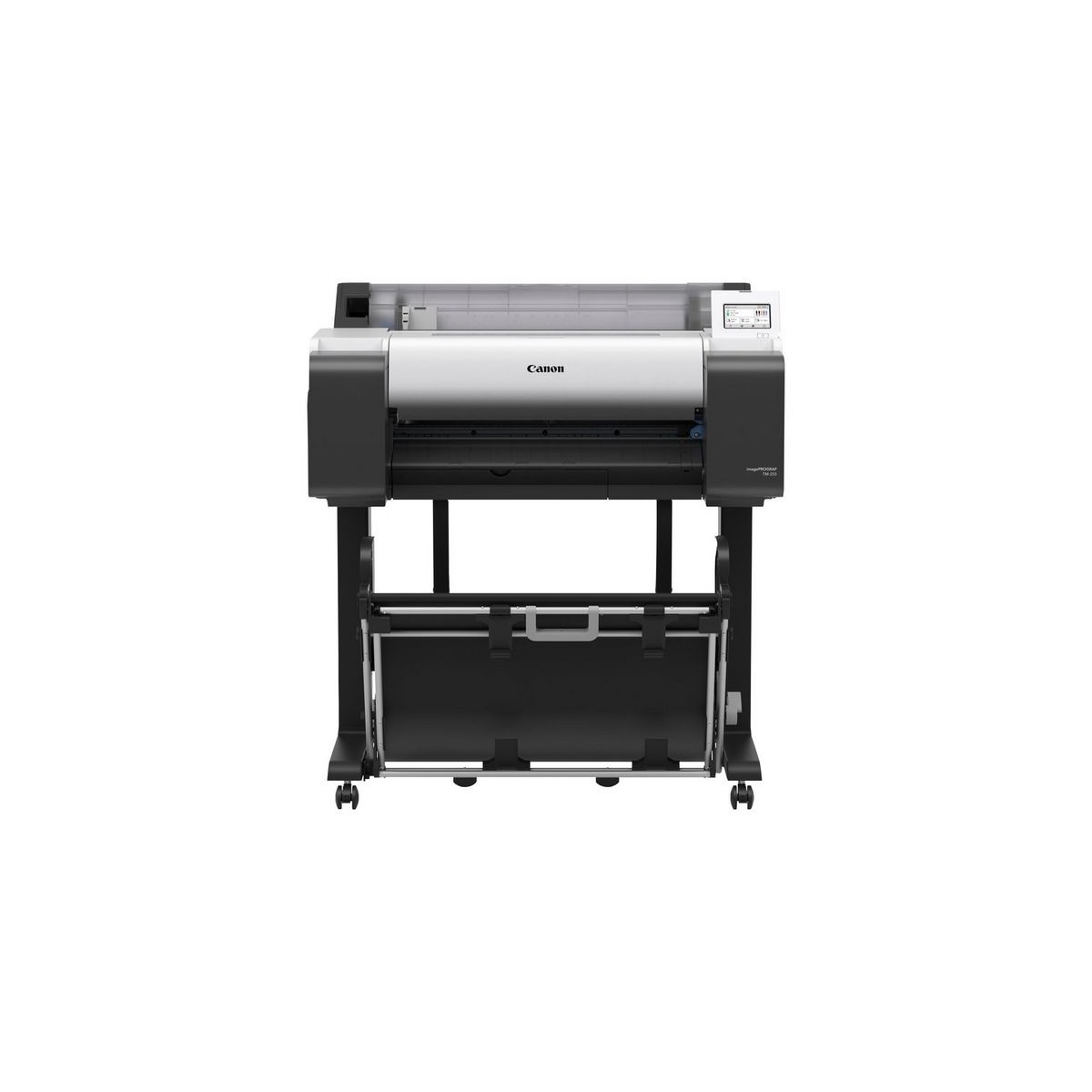 Canon imagePROGRAF TM-255. Tecnologia di stampa: Ad inchiostro, Risoluzione massima: 2400 x 1200 DPI, Lingue di descrizione della pagina: CALS G4, HP-GL/2, HP-RTL, PDF 1.7. Capacità totale in ingresso: 20 fogli. Tipi di supporti per vassoio della carta: Carta normale, Rotolo, Dimensioni ISO serie-A (A0...A9): A1, A2, A3, A3+, Dimensioni supporti stampa senza bordi: A3, A3+, B4. Connettore USB: USB Type-A / USB Type-B, Velocità trasferimento Ethernet LAN: 10,100,1000 Mbit/s, Tecnologia di stampa mobile: Apple AirPrint. Colore del prodotto: Nero, Bianco, Dimensioni diagonale schermo: 10,9 cm (4.3"), Tipo di controllo: Touch
