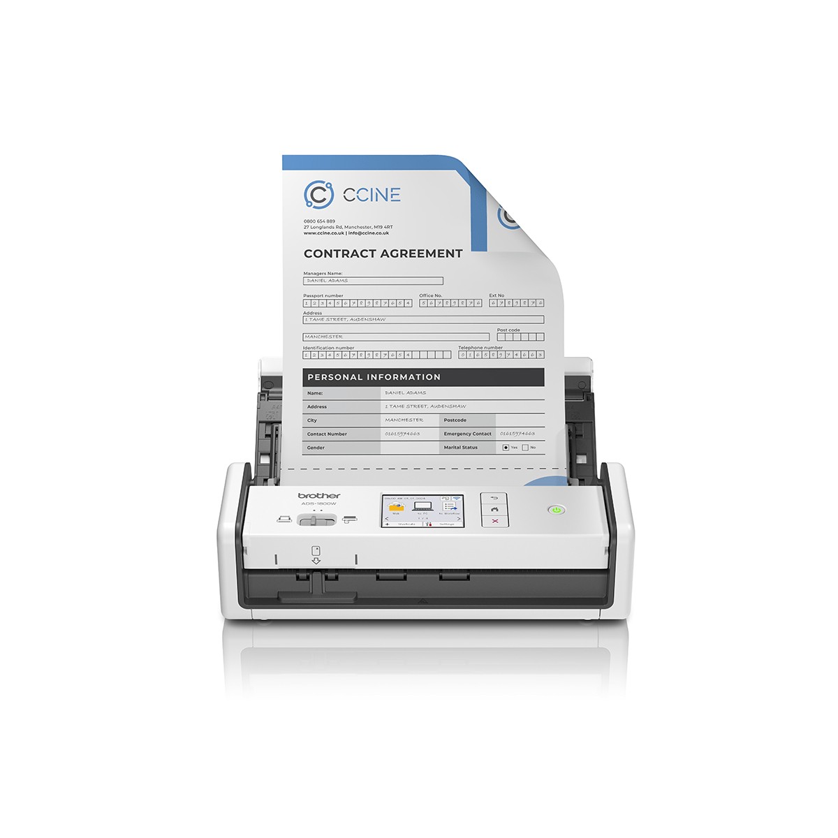 Brother ADS-1800W. Massima dimensione di scansione: 215,9 x 355,6 mm, Risoluzione di scansione ottica: 1200 x 1200 DPI, Velocità di scansione ADF (n/b, A4): 20 ppm. Tipo di scansione: Scanner ADF, Colore del prodotto: Bianco, Tipologia display: LCD. Scansione a: FTP, PC, SMB, Driver di scansione: SANE, TWAIN, WIA, Rumorosità (in scansione): 62 dB. Capacità documenti: 20 fogli. Massimo formato carta serie ISO A: A4, Scanning media types supported: Biglietto da visita, Carta normale, Scheda plastica, Carta riciclata, Carta spessa, Carta sottile, Dimensioni ISO serie-A (A0...A9): A4