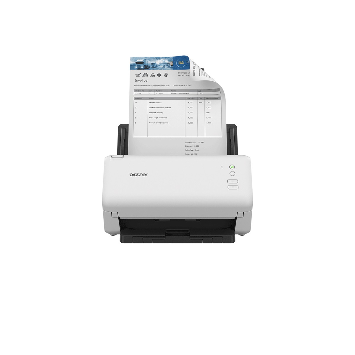 Brother ADS-4100. Massima dimensione di scansione: 215,9 x 355,6 mm, Risoluzione di scansione ottica: 600 x 600 DPI, Risoluzione di scansione migliorata: 1200 x 1200 DPI. Tipo di scansione: Scanner ADF, Colore del prodotto: Nero, Bianco, Tipo di controllo: Pulsanti. Tipo sensore: Dual CIS, Scansione a: Immagine, PC, USB, Driver di scansione: ICA, SANE, WIA. Capacità documenti: 60 fogli. Massimo formato carta serie ISO A: A4, Scanning media types supported: Biglietto da visita, Carta normale, Scheda plastica, Carta riciclata, Carta spessa, Carta sottile, Spessore della scheda (max): 1,1 mm