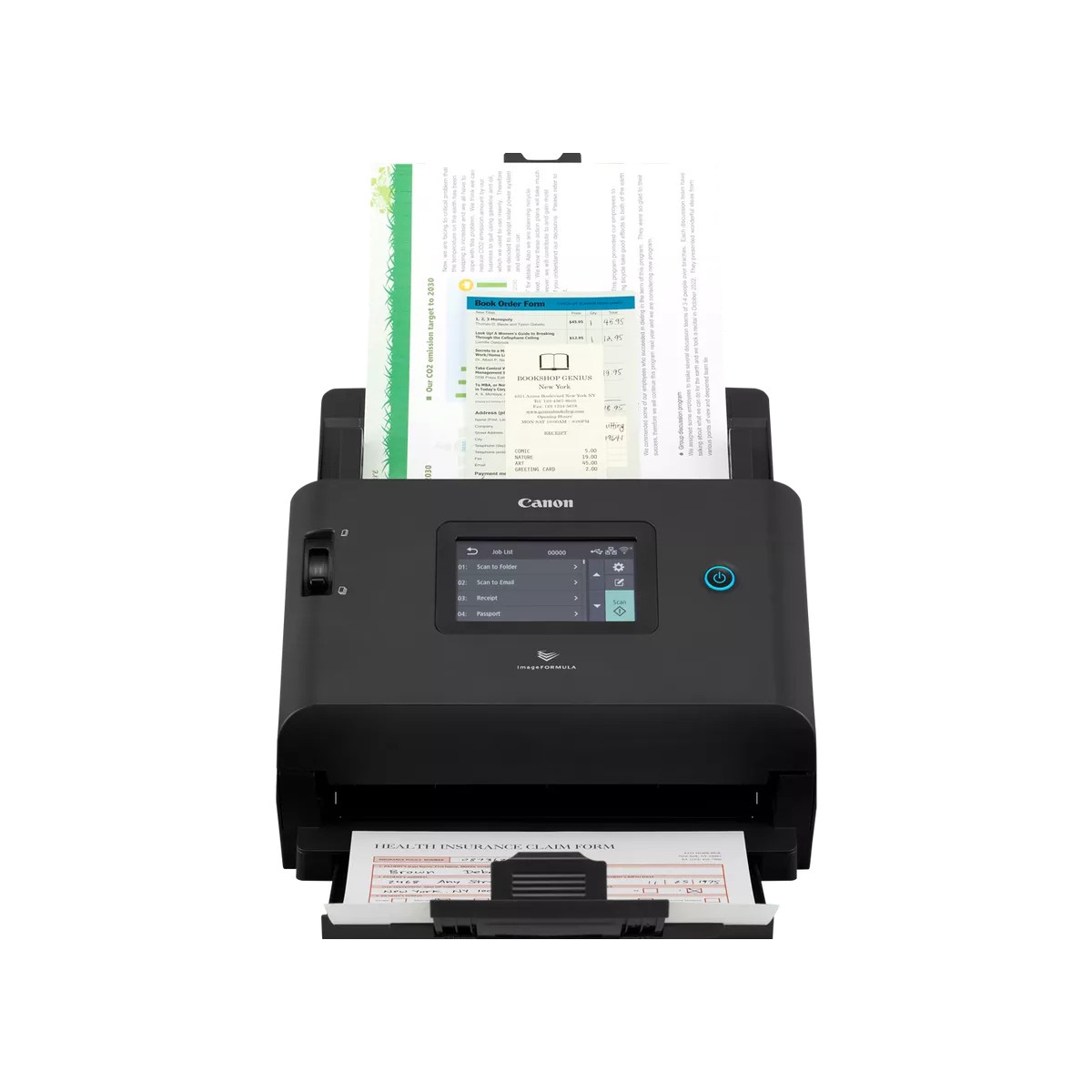 Canon DR-S350NW. Risoluzione di scansione ottica: 600 x 600 DPI, Velocità di scansione ADF (n/b, A4): 50 ppm, Velocità di scansione Duplex ADF (n/b, A4): 100 ipm (pollice al minuto). Tipo di scansione: Scanner ADF, Colore del prodotto: Nero, Tipologia display: LCD. Tipo sensore: CIS, Ciclo di funzionamento quotidiano (max): 9000 pagine, Scansione a: FTP. Capacità documenti: 60 fogli. Massimo formato carta serie ISO A: A4, spessore dei materiali (min): 0,04 mm, Spessore della scheda (max): 0,3 mm