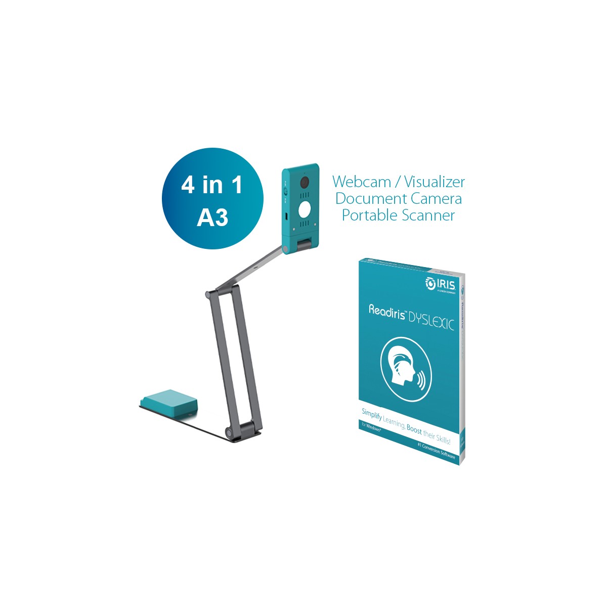 I.R.I.S. IRIScan Visualizer 7 + Readiris Dyslexic 2.0 Scanner aereo 4160 x 3120 DPI A3 Blu artico, Argento