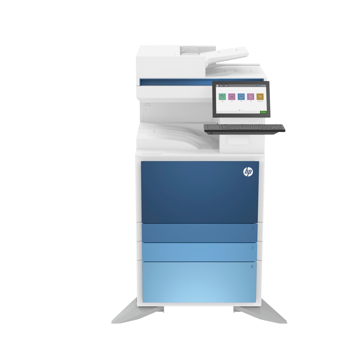 HP Color LaserJet Managed Flow Stampante multifunzione Managed Color LaserJet Flow E786z. Tecnologia di stampa: Laser, Stampa: Stampa a colori, Risoluzione massima: 1200 x 1200 DPI, Velocità di stampa (colore, qualità normale, A4/US Letter): 25 ppm. Copia: Copia a colori, Risoluzione di copia massima: 600 x 600 DPI. Scansione: Scansione a colori, Risoluzione di scansione ottica: 600 x 600 DPI. Funzione duplex: Stampa, Copia, Scansione. Massimo formato carta serie ISO A: A3. Stampa diretta. Colore del prodotto: Blu, Bianco
