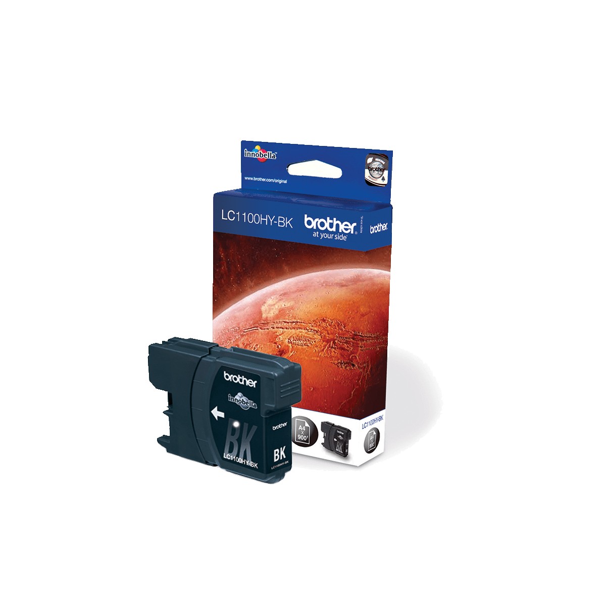 Brother LC1100HYBK. Tipo di inchiostro nero: Inchiostro a base di pigmento, Tipo di fornitura: Confezione singola, Resa in pagine dell'inchiostro a colori: 900 pagine, Colori di stampa: Nero, Quantità per pacco: 1 pz