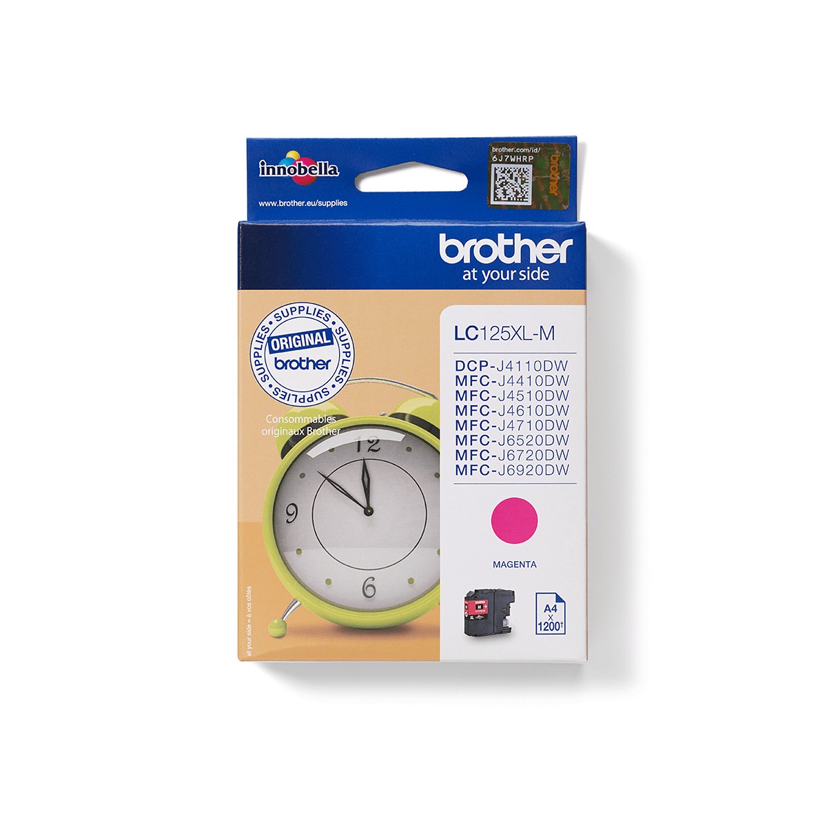 Brother LC125XLM. Tipo di inchiostro a colori: Inchiostro a base di pigmento, Tipo di cartuccia: Resa extra elevata (super), Tipo di fornitura: Confezione singola, Resa in pagine dell'inchiostro a colori: 1200 pagine, Colori di stampa: Magenta, Quantità per pacco: 1 pz