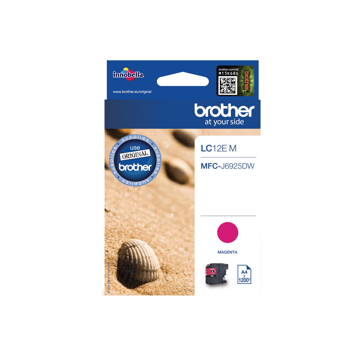 Brother LC12EM. Tipo di inchiostro a colori: Inchiostro a base di pigmento, Tipo di fornitura: Confezione singola, Resa in pagine dell'inchiostro a colori: 1200 pagine, Colori di stampa: Magenta, Quantità per pacco: 1 pz