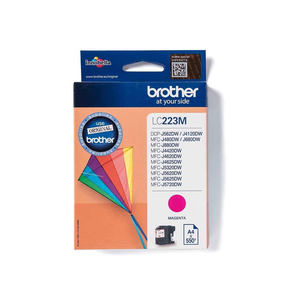 Brother LC223M. Tipo di inchiostro a colori: Inchiostro a base di pigmento, Tipo di fornitura: Confezione singola, Resa in pagine dell'inchiostro a colori: 550 pagine, Colori di stampa: Magenta, Quantità per pacco: 1 pz