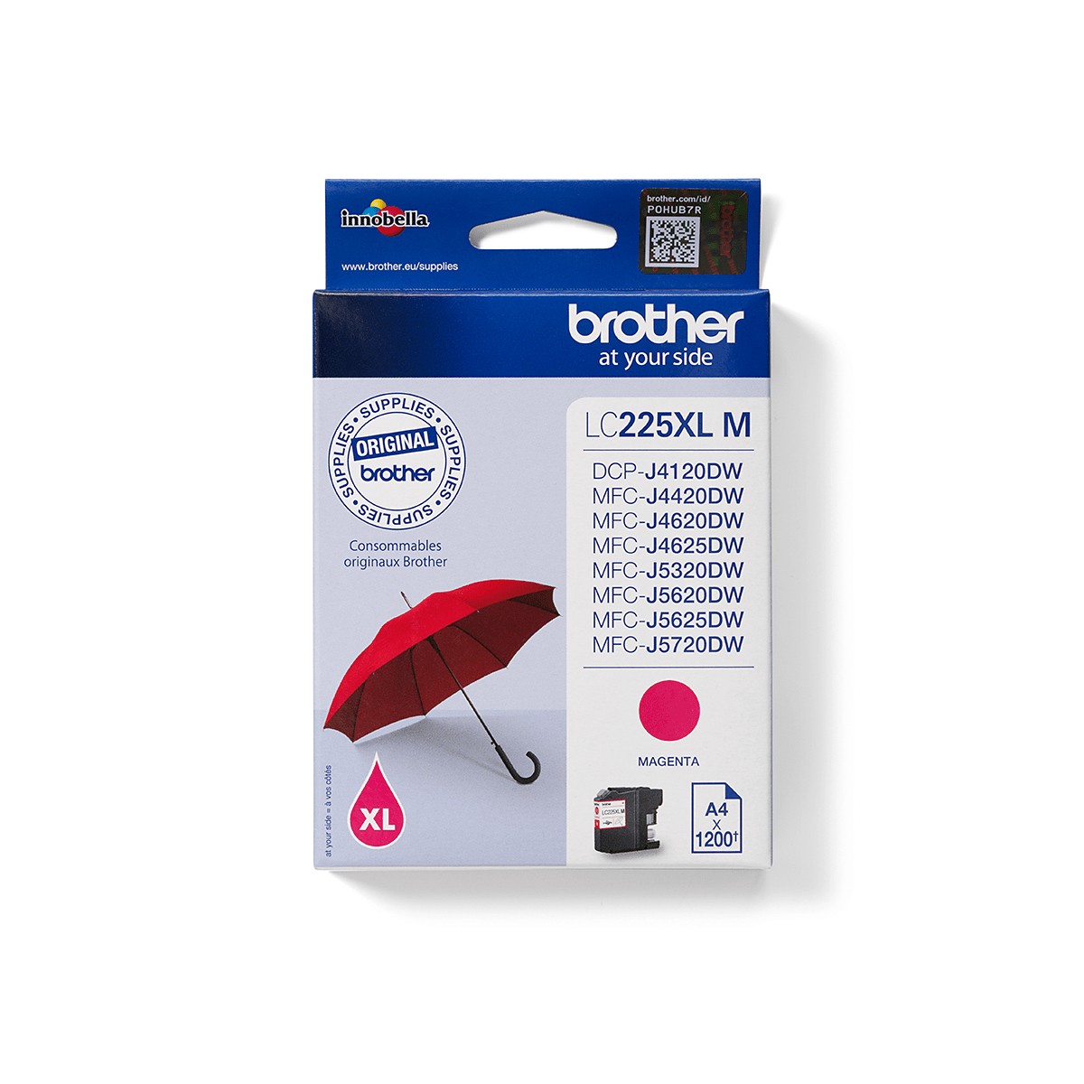Brother LC225XLM. Tipo di inchiostro a colori: Inchiostro a base di pigmento, Tipo di fornitura: Confezione singola, Resa in pagine dell'inchiostro a colori: 1200 pagine, Colori di stampa: Magenta, Quantità per pacco: 1 pz