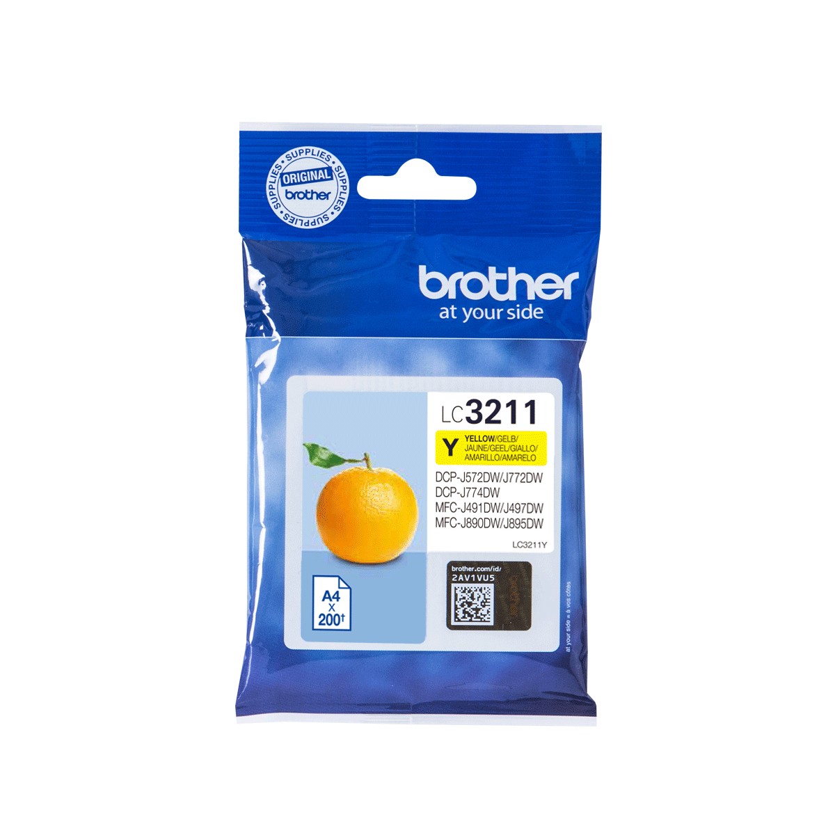 Brother LC3211Y. Tipo di inchiostro a colori: Inchiostro a base di pigmento, Tipo di cartuccia: Resa standard, Tipo di fornitura: Confezione singola, Resa in pagine dell'inchiostro a colori: 200 pagine, Colori di stampa: Giallo, Quantità per pacco: 1 pz