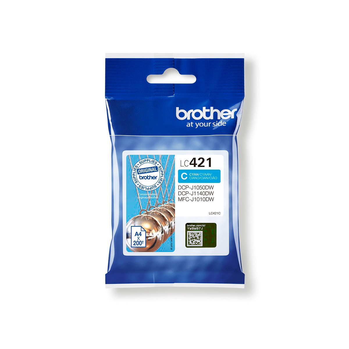 Brother LC421C. Tipo di fornitura: Confezione singola, Resa in pagine dell'inchiostro a colori: 200 pagine, Colori di stampa: Ciano, Quantità per pacco: 1 pz
