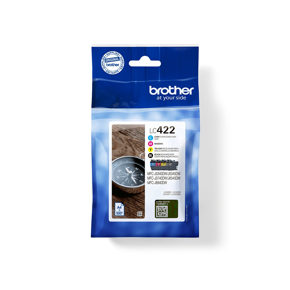 Brother LC422VAL. Tipo di fornitura: Confezione multipla, Resa in pagine dell'inchiostro a colori: 550 pagine, Colori di stampa: Nero, Ciano, Magenta, Giallo, Quantità per pacco: 4 pz, Resa in pagine dell'inchiostro a colori: 550 pagine