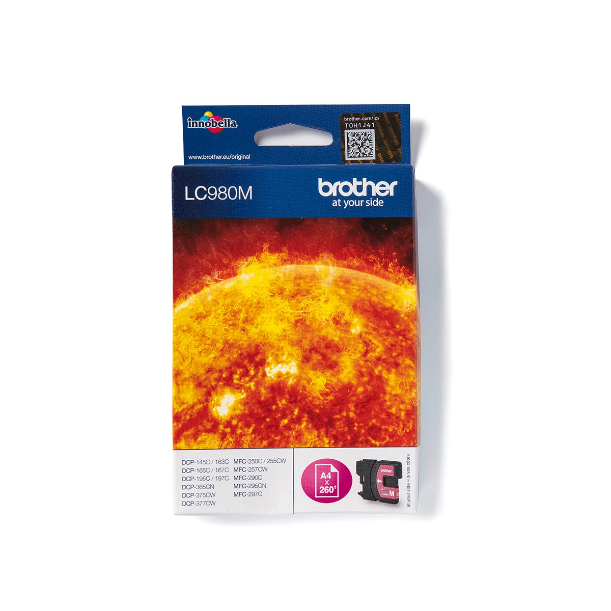 Brother LC980M. Tipo di inchiostro a colori: Inchiostro a base di pigmento, Tipo di fornitura: Confezione singola, Resa in pagine dell'inchiostro a colori: 260 pagine, Colori di stampa: Magenta, Quantità per pacco: 1 pz